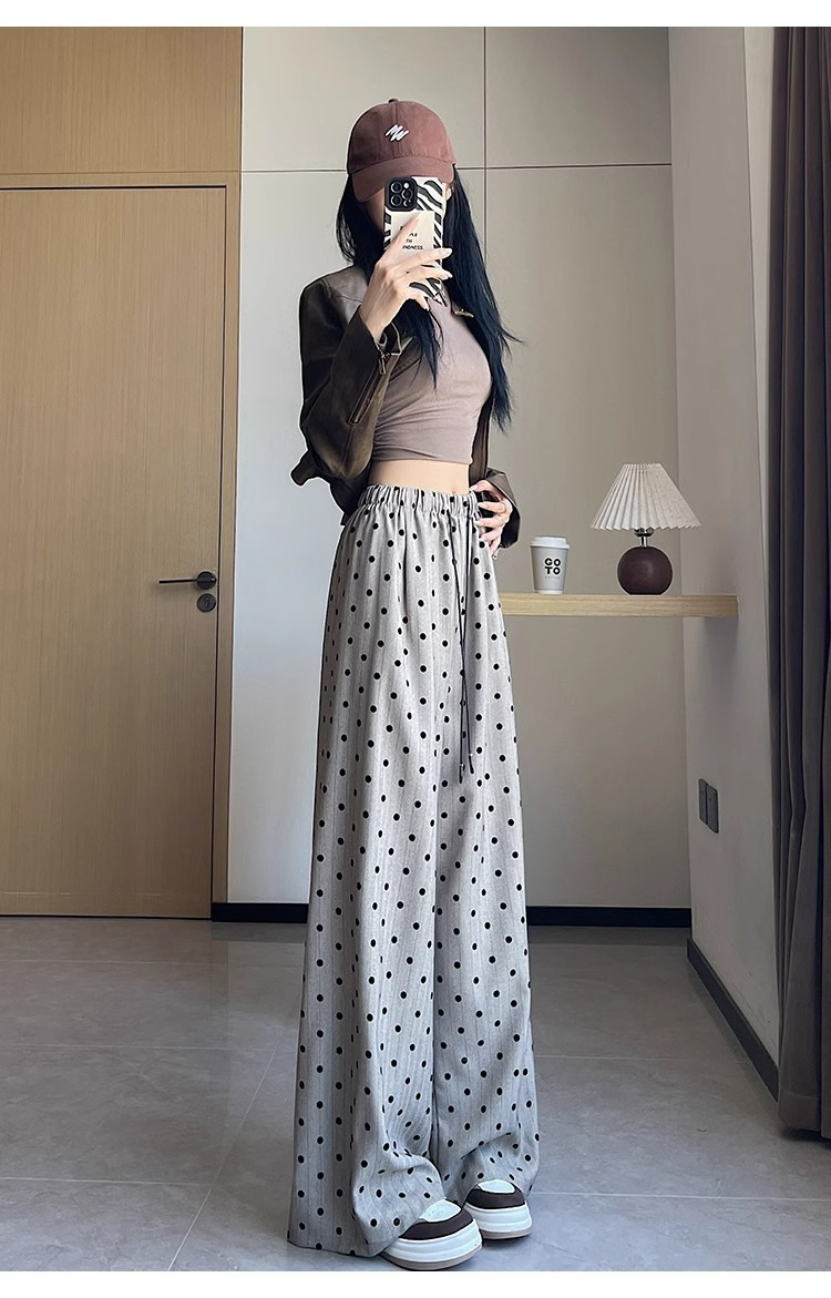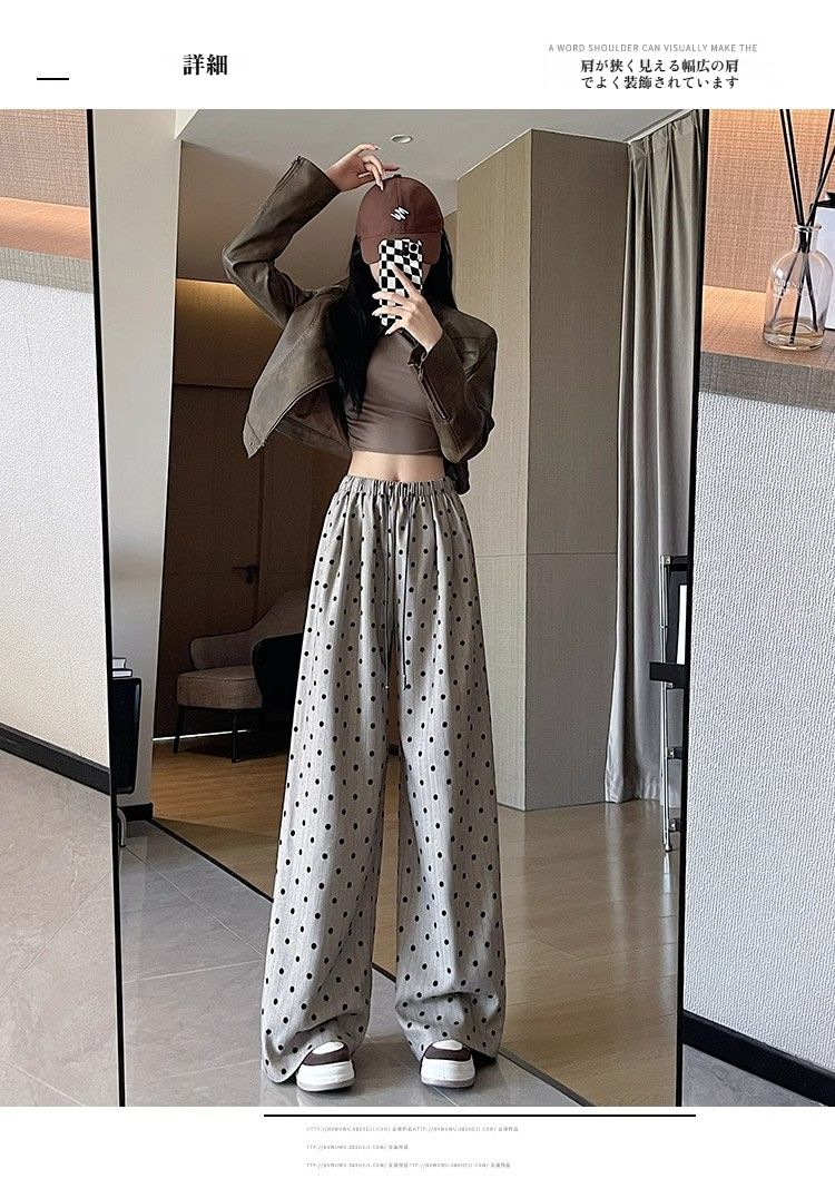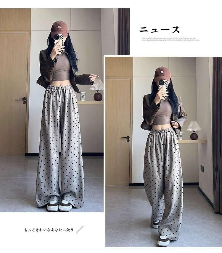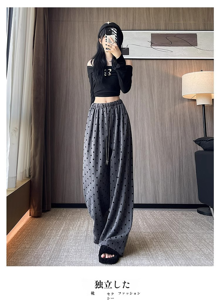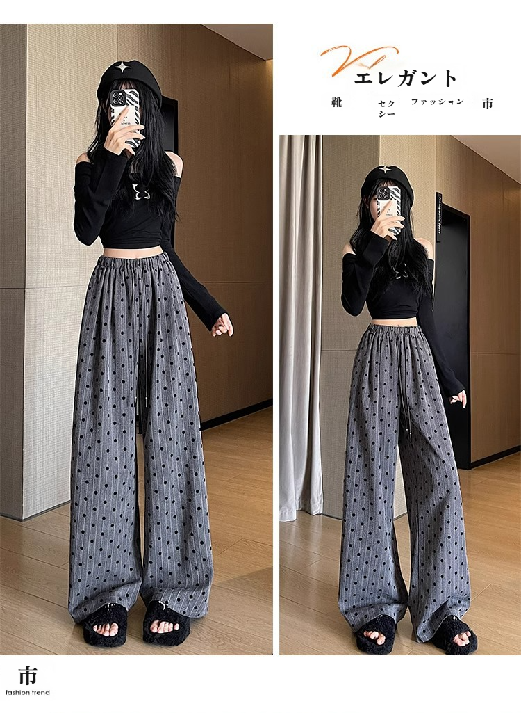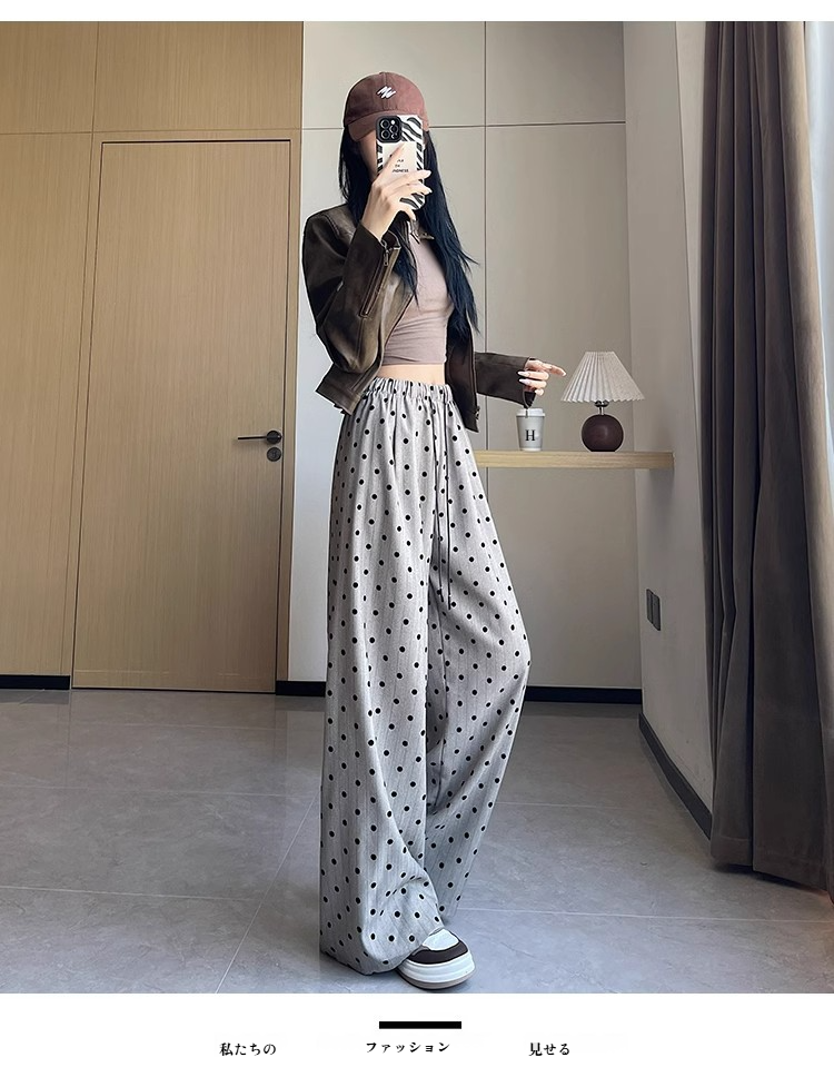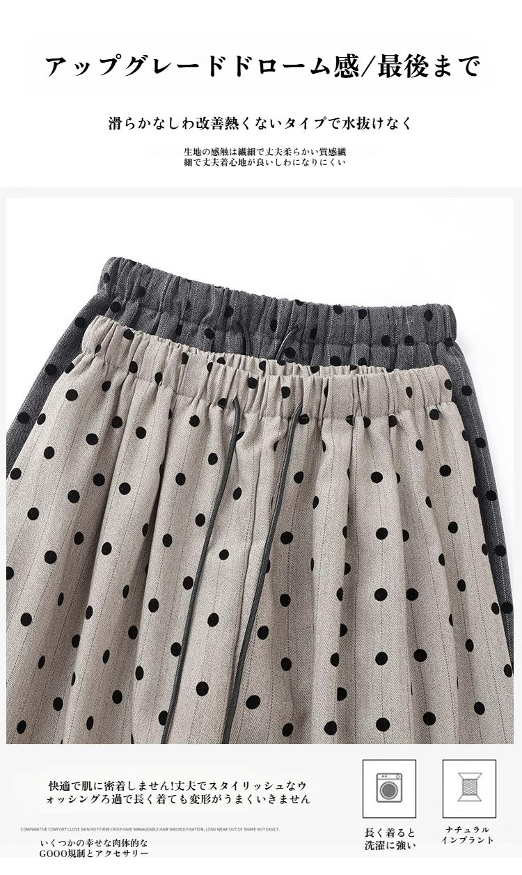カジュアルワイドドットバンディングパンツ レディースストレート