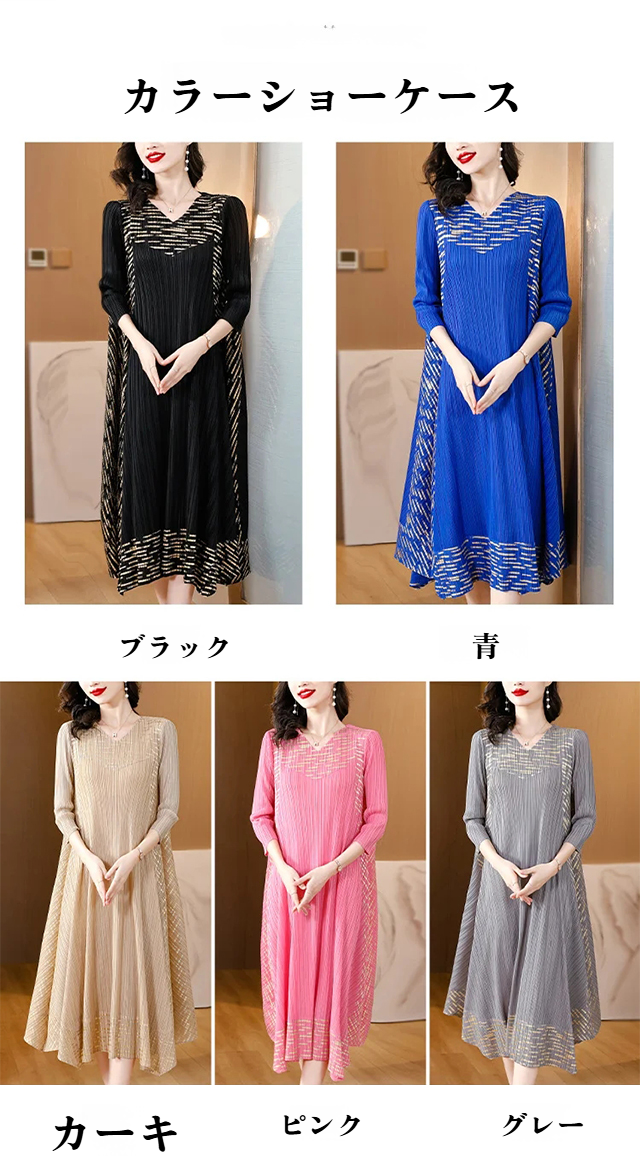 お腹カバー効果抜群!ストレッチ素材Aラインシャーリングワンピース
