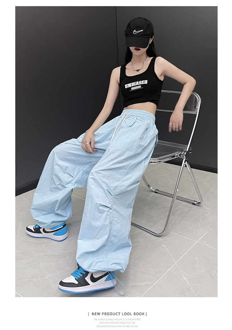 夏用レディースハイウエストアメリカンワイドカーゴパンツストリング付きスリムタイプ