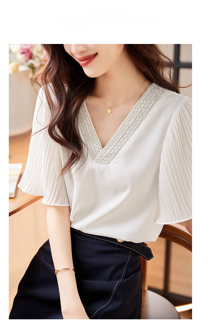 女性用ゆったり半袖シャツ お腹隠しホワイトブラウス 春夏用トップス